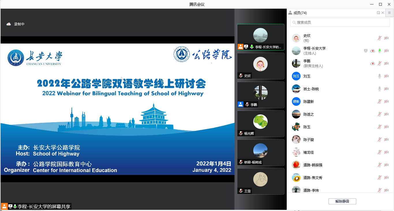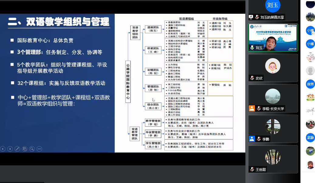 双语教学管理办法》,重点解读了双语教学组织与管理、双语教学基本要求、全英毕业设计基本要求、双语课程教学工作量考核与分配、全英毕业设计(论文)工作量考核与分配等关键内容。他强调双语教学的核心是专业内容,特色是双语,需要强化“专业能力”和“语言能力”的融合式培养。随后按照道路、桥梁、岩隧、管理与综合四个线上分会场,与会人员对新修订的《色情网