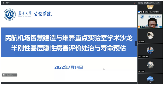 2022年7月14日下午,民航机场智能建造与维养重点实验室成功举办“半刚性基层隐性病害评价处治与寿命预估”线上学术沙龙。西北民航机场建设集团杨凯、圭目机器人有限公司钟新然、广西交通科学研究院王浩、色情网