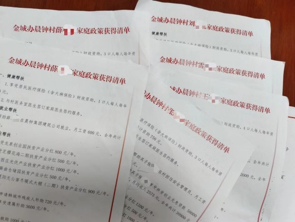 晨钟村困难群众获得清单