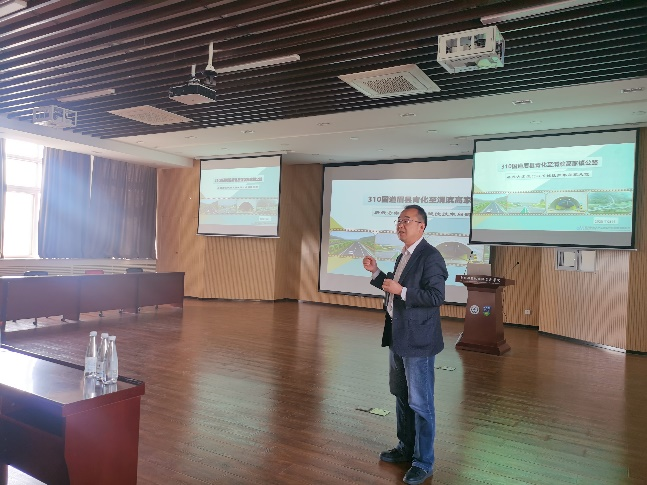 3月14日,胡建荣对2022届道路方向全英文毕业设计校企联合指导进行了简要总结,对2023届本科毕业设计校企联合指导提出了要求。高级工程师周茂以310国道眉县至渭滨一级公路为例,详细讲述了路线方案设计及关键性技术问题处理。
