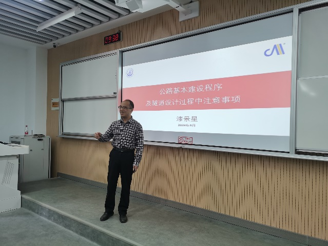 3月21日,漆景星总结了2022届岩隧方向全英文毕业设计指导工作,并做题为“项目基本建设程序及隧道设计过程中注意事项”的讲座,结合实际工程案例为学生讲解了公路基本建设程序、项目设计阶段及基本内容、隧道设计注意事项。