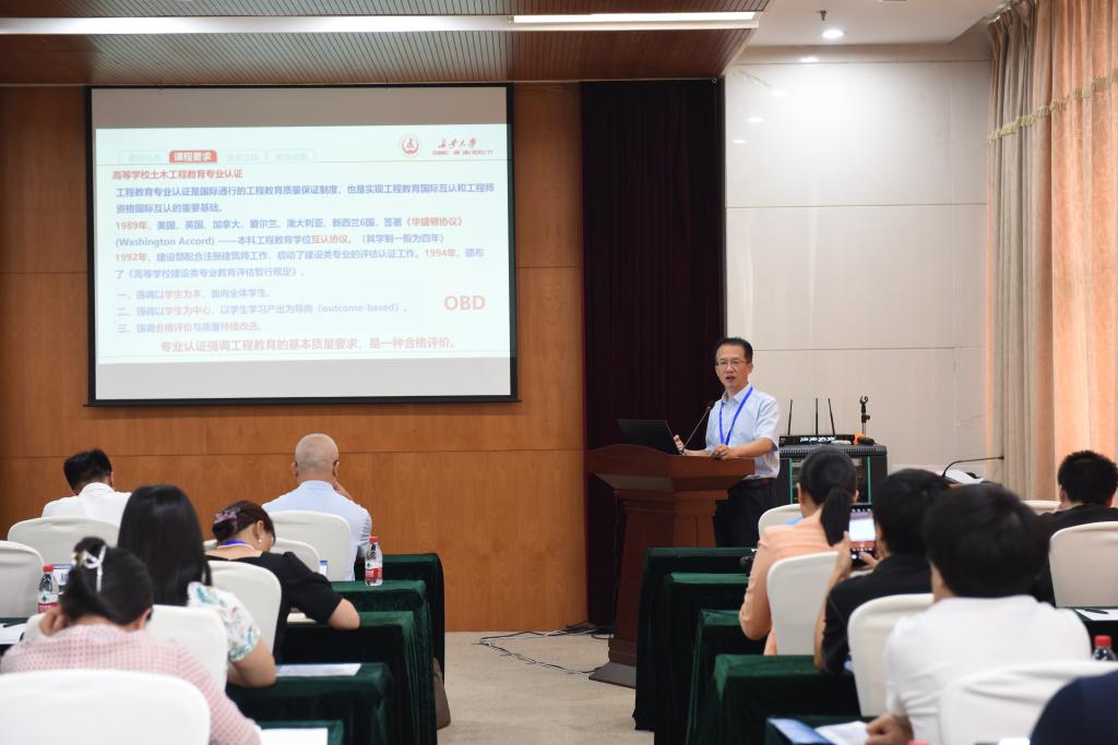 申爱琴教授做题为《两性一度为基准,倾力打造金课,促进一流学科发展》的主旨报告,胡力群教授做题为《工程实践进课堂》的专题报告,杨旭教授做以题为《路用集料性能》的青年教师授课演示。会议期间,学院教师结合新时代“交通强国”战略需求,与参与人员就课程体系优化、教学内容更新、一流教材建设、课程思政、创新创业教育、教育信息化等开展了深入交流和讨论,对提升公路交通类专业人才培养质量起到了积极作用。