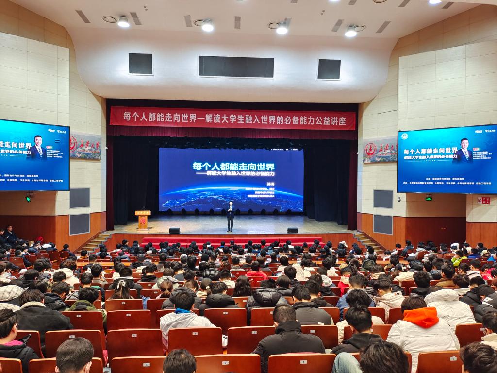 、长安都柏林国际交通学院、汽车学院、水利与环境学院、运输工程学院联合承办,来自各院(系)的1000余名学生在北校区长安文化艺术中心大礼堂参加讲座。