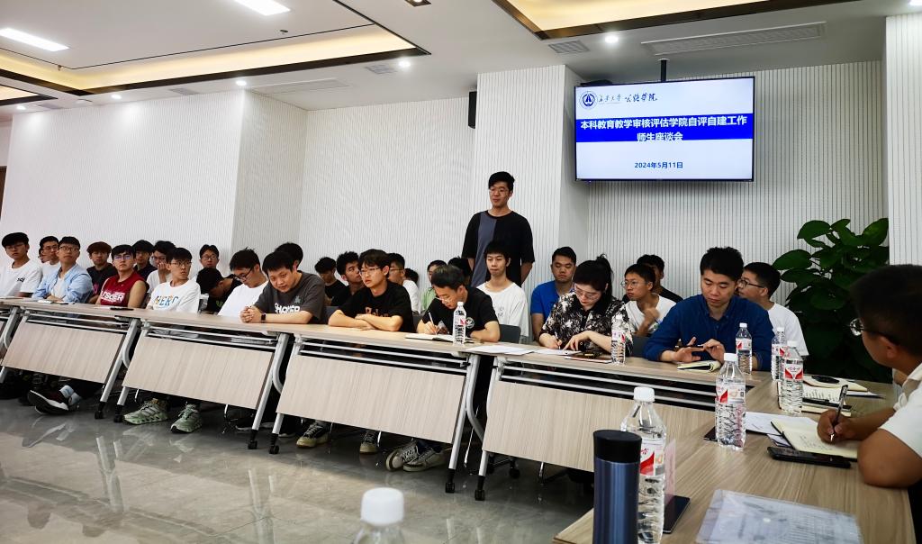 为全面推进新一轮本科教育教学审核评估迎评促建工作,5月11日中午,学院在弘毅大厦第三会议室召开本科教育教学审核评估学院自评自建工作师生座谈会。学院党委书记、副院长张久鹏,教学督导陈传德、各系(中心)副主任、教师代表、教务、学办相关人员以及学院各年级学生代表参加会议。会议由专业建设及教学主管张晔主持。