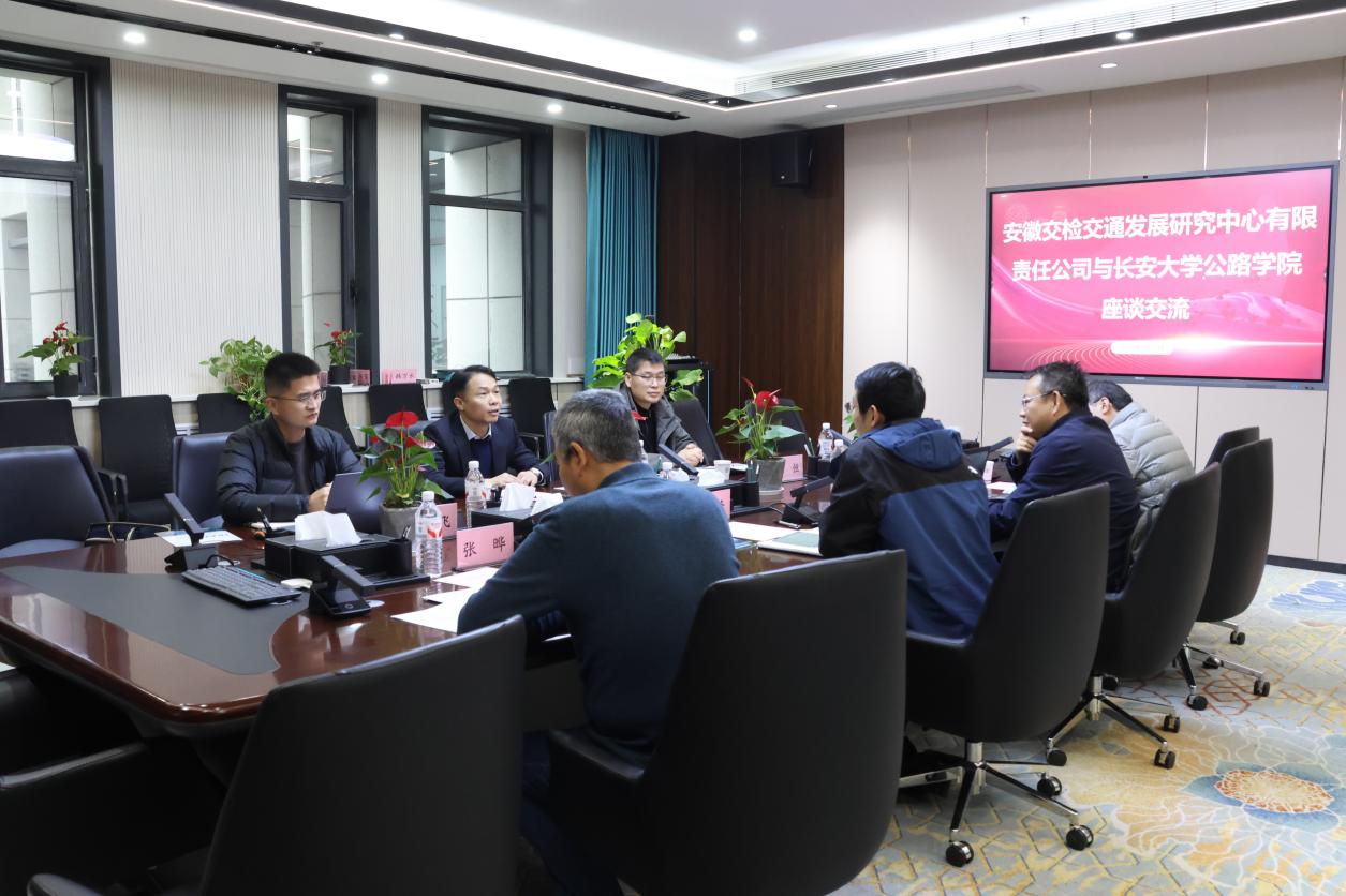 在道路桥梁检测监测、养护管理、智慧交通等领域的学科特色与科研优势。他指出,安徽交检在工程检测、技术咨询、成果转化等方面具有丰富的实践经验,与学院在科研攻关、人才培养、平台共享等方面合作空间广阔。希望双方以此次交流为契机,围绕交通基础设施全寿命周期管理、智能化检测技术、养护决策体系构建等方向深化合作,共同推动产学研用深度融合。