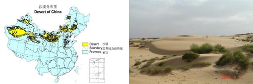 我国沙漠面积为80.89万平方千米,约占国土面积的十分之一(8.43%)。我国主要有8大沙漠,这些沙漠主要分布在西北部。沙漠及周边地区往往自然环境恶劣,经济欠发达,但却可能是石油、天然气和煤炭等资源的富集区。