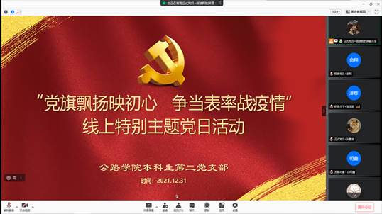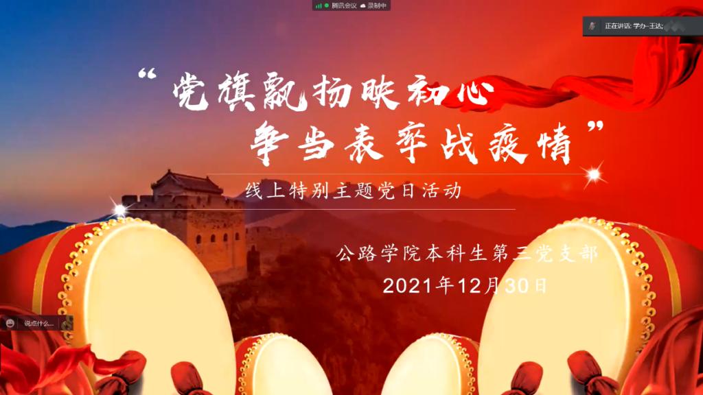 本科生第三党支部于2021年12月30日开展线上特别主题党日活动,支部全体党员、发展对象和入党积极分子参加,活动由支部副书记张昕主持。
