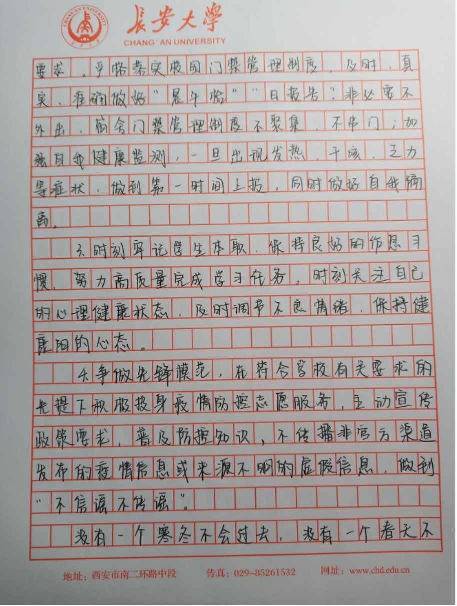 研究生党员、入党积极分子纷纷向党组织递交思想汇报,汇报自己近期的所思所想,这437份战“疫”时期的思想汇报,更是体现出公路学子在党的坚强领导下所凝聚出打赢疫情防控阻击战的强大合力。