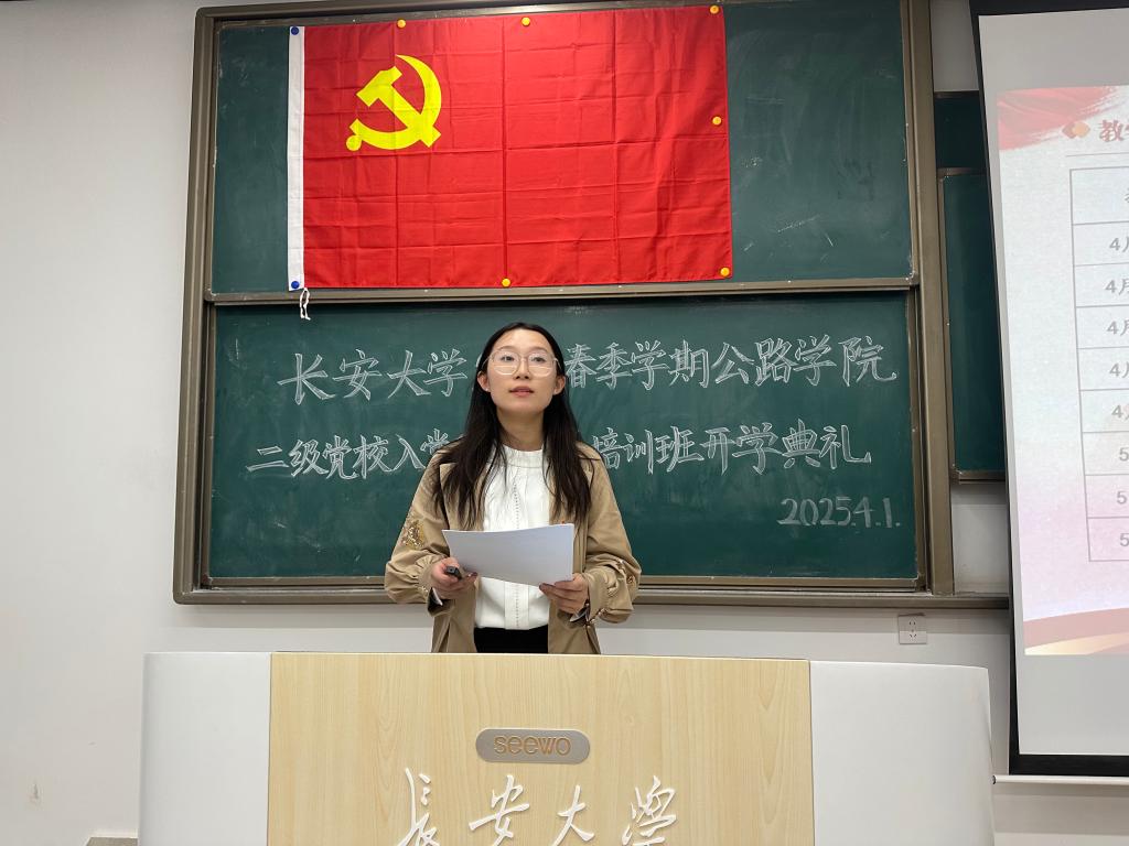 副班主任刘亦澜宣读了春季学期入党积极分子培训班教学计划、班级构成、学员考核标准和学习纪律,她鼓励全体学员将党课学习视作一场砥砺初心的征程,以高标准严格要求自己,在理论学习中筑牢信仰根基,在实践考验中彰显担当作为,逐步成长为一名合格的共产党员。