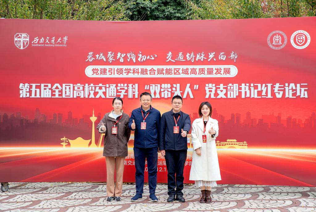 12月12日-12月14日,第五届全国高校交通学科“双带头人”教师党支部书记红专论坛在成都西南交通大学召开。本次论坛以“蓉城聚智践初心,交通铸脉兴西部——党建引领学科融合赋能区域高质量发展”为主题,旨在深入学习贯彻习近平新时代中国特色社会主义思想和党的二十大四中全会精神,落实新时代党的建设总要求和新时代党的组织路线,进一步加强高校交通学科“双带头人”教师党支部书记模式建设,推动党建工作与学科建设、人才培养、科学研究等中心工作同频共振、互促共进。色情网