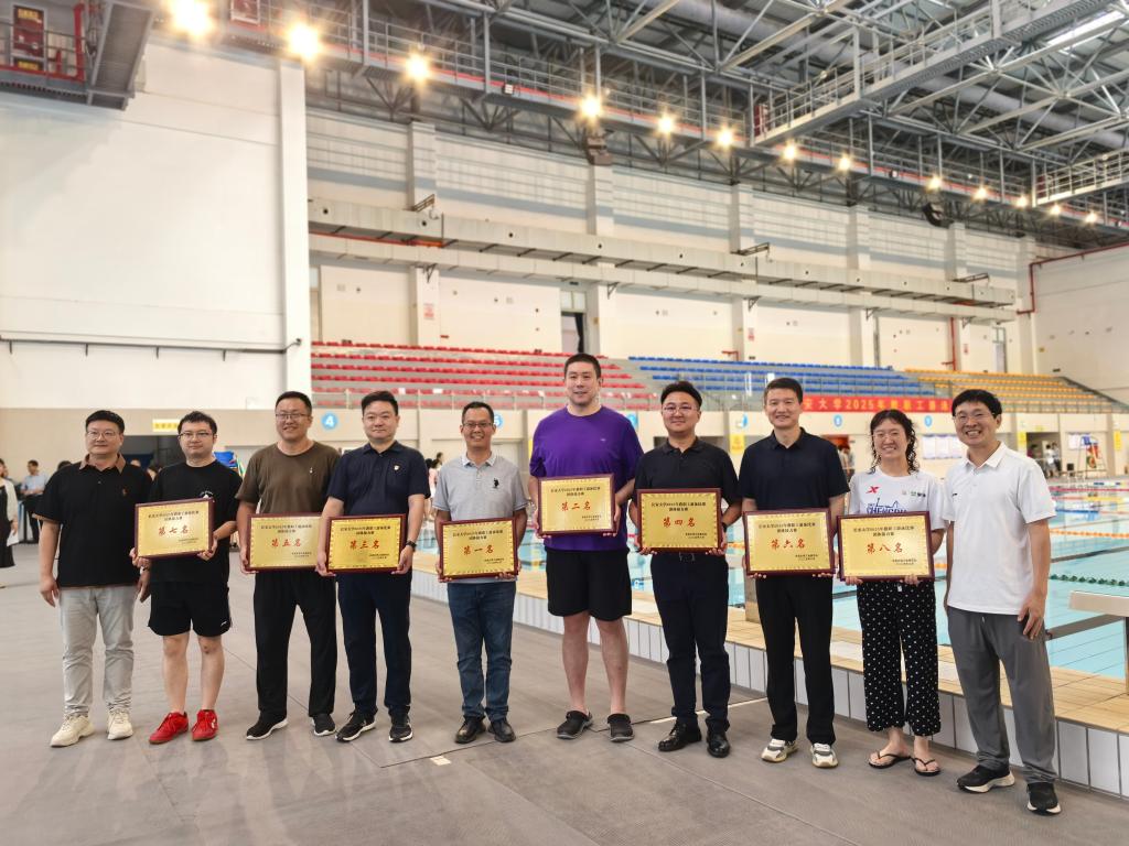 参赛教职工斗志昂扬,在水中劈波斩浪。在团体赛中,队员们默契配合、奋力冲刺,凭借出色发挥,从21支队伍中脱颖而出,一举夺得团体赛冠军,实现在此赛事中色情网